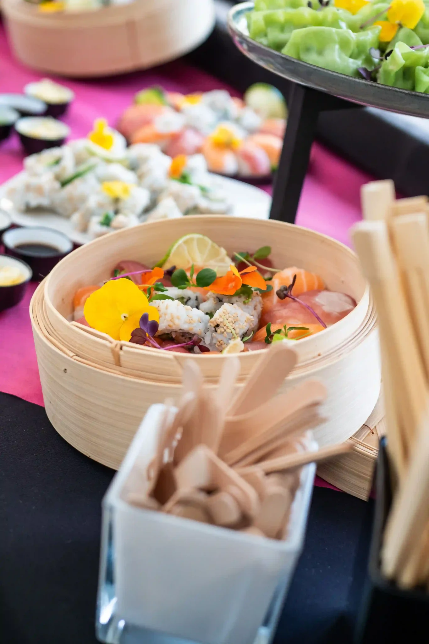 Notre galerie met en lumière la qualité de nos produits, la créativité de nos dressages et l’attention portée à chaque détail lors de vos événements. Des pièces cocktail raffinées aux buffets autour du monde, en passant par les décors de table et les mises en scène élégantes, chaque visuel témoigne de l’expérience unique que nous offrons à nos clients.